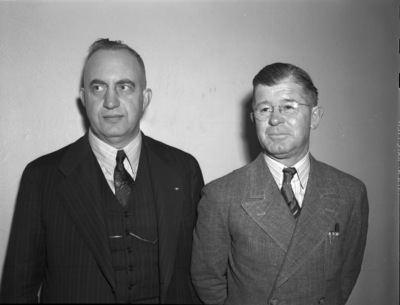 New officers of the Texas Dog Show Circuit are C. K. Rickel, left, president, and Fred W. Grant, secretary-treasurer, both of Fort Worth, Texas, and members of the Fort Worth Kennel Club. They are standing against a bare wall, both wearing suits.