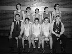 William James Junior High School. Basketball team. Left to right, Coleman Phillips, Irvin Caraway, Elton Lewis, Kenny Peacock and Jimmy Sanders. Bottom row, left to right, Coach H. A. Crowley, Joe Freeman, Toby Goldsmith, Tommy Smith and Coach Hall Splawn.