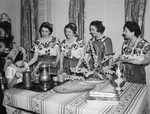 Hostesses for "South of the Border" tea. Left to right, Mrs. R. Tucker, Mrs. Nick Dieb, Mrs. H. F. Browne, Mrs. J. L. Edwards and Mrs. Overton Holt.