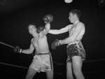 Shown in action are Aubrey Martin, of Fort Worth, Texas, left, and Jay Turner, of Abilene, Texas, during the third round of the heavyweight championship bout at the Golden Gloves State Tournament. Aubrey is shown as he missed a left jab.