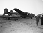 Consolidated Aircraft 30-ton land bomber next to midget plane at Fort Worth's Municipal Airport, Meacham Field.
