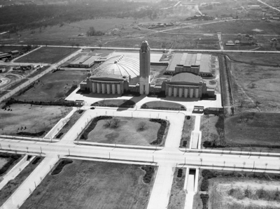 Air view of Will Rogers Memorial Coliseum complex looking toward southwest. (no clipping)