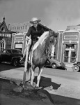 Bill Allen, shown on his horse and wearing his western attire at South Western Exposition and Fair Stock Show publicity.