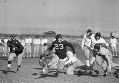 Texas Christian University (T. C. U.) Spring football trainee Emory Nix. He's seen to be wearing a Jersey with the number 23 on it. He played on the state championship Corpus Christi High School Team in 1938.