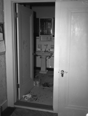 Snyder, D. H. (Mrs.); Crimes; Interiors; Passageways; Bathrooms; Doors & doorways; Homes
