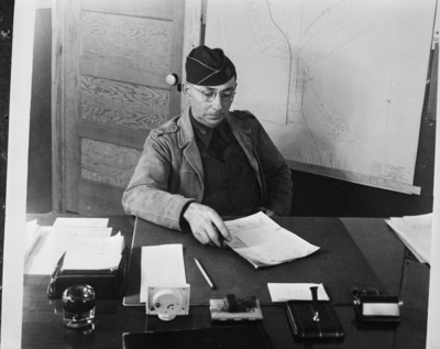 Brewer, Paul (Maj.)"; Construction; Desks; Offices; Maps; Military uniforms; Quartermasters