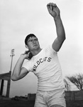 Ed. Dusek, Temple, qualifying for shotput finals at Southwestern Exhibition and Fat Stock Show Track Meet.