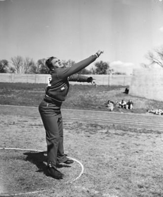 Southwestern Exhibition and Fat Stock Show Track Meet. Jack Hughes, University of Texas giant discus-thrower.