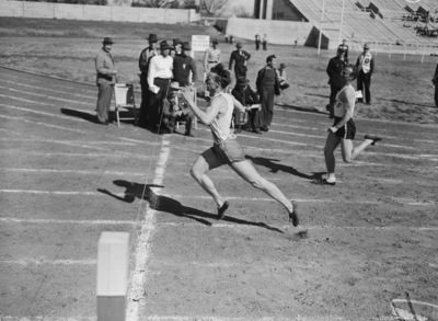 Southwestern Exhibition and Fat Stock Show Track Meet. Sprinter Fred Ramsdell Junior, University of Texas.