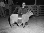 Champion livestock at the Southwestern Exposition and Fat Stock Show. Jim Shearman, El Paso, Texas, with his grand champion lamb. Grand Champion lamb sold to Westbrook Hotel at $1.35 a pound.
