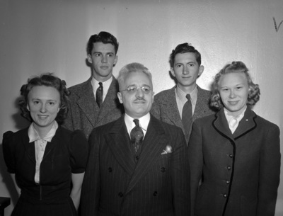 Christian Endeavor Leaders. Left to right, Miss Frances Jenkins, Jack Sims, Reverend D. D. Wilson, Chalmers Highes and Miss Mable Soule.