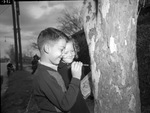 Signs of Spring in Fort Worth, Texas. Ralph Martin and Patsy Sterling, seen carving their initials in a tree.