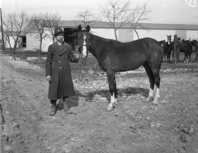 113th Cavalry at Camp Bowie, Brownwood, Texas; Sergeant Jack Beckman with his mount, Pal.