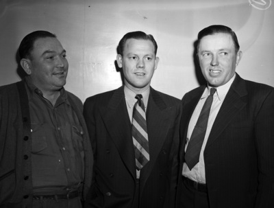 Municipal Baseball managers. Left to right are Buster Wisrock, Walter Paschal and J. J. Hall. The three men are shown standing shoulder to shoulder, posing for a picture.