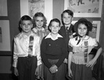 Winners in Robin Hood poster contest, standing side by side. Left to right, front row, are Maurice Brown, Dick Judd and Marilyn Rose Barbee; Back row, Rojean Gay and John Victor Harris.