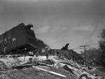 A freight train derailment on the Missouri-Kansas-Texas Railroad near Dale, Texas, in which two men were killed. One of the victims was tentatively identified as James P. Greer or James P. Gunn of Austin, Texas. The other was identified by a social security card as Tommy Eugene Wooderd, 26, of Greenbriar, Tennessee. A line of people are standing alongside the train.
