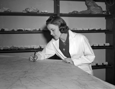 Women geologists and paleontologists in Fort Worth, Texas. Ethel Evans Bennett, fellow in geology at Texas Christian University.