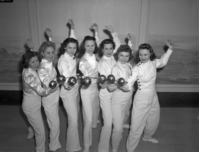 Southwestern Fencing Tournament- Royal Assassins, left to right, Miss Jimmy Myer, coach; Billie Long, Connie Nagle, Dorothy Glanton, Jean Harris, June Douglass and Harriett Knight.