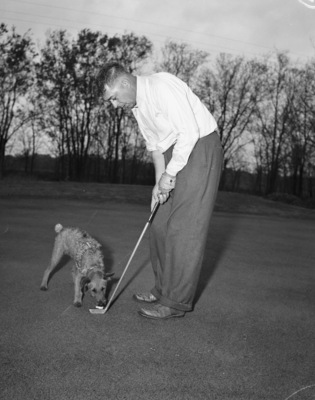 Lewis, Llyod; Irish Terriers; Golf; Golf Clubs; Golfers; Gloves; Dogs; Putting (Golf); Colonial Golf Course