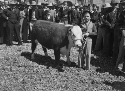Calves; Cattle; Livestock shows; Children; Suits (Clothing)