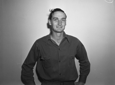 New Officers -- Texas Christian University (T. C. U.) is electing new student body officers for the 1941 school year. Ronnie Brumbaugh is the new class president. He is standing against a wall, dressed in a button-up shirt and trousers. He is smiling. Published in The Fort Worth Star-Telegram morning edition, April 3, 1941.