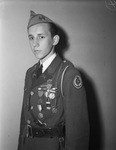 Cadet Lieutenant Colonel Glynn R. Kruger, commander of the First Regiment from Paschal High School, in uniform displaying medals and military decorations. He will play an important role in the combined high school review and parade of the cadet corps to be staged on Sunday, April 6 at 4:30 pm in Farrington Field. Published in the Fort Worth Star-Telegram evening edition, April 4, 1941.