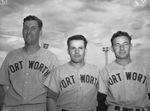 Fort Worth Cats baseball players (left to right) Lou Vezilich, Joe Abreu and Clyde "Rabbit" McDowell. The three men are standing next to each other on a field, wearing matching Fort Worth Cats baseball uniforms. Their jerseys read "Fort Worth" across the front.