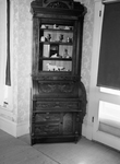 Image is of an interior shot of Robert McCart's home, showing an upright and tall china cabinet filled with antique knick-knacks. (no clipping)