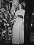 Googins, Mary Ruth; Dresses; Flower arrangements; Flowers; Vases; Googins, J. B. (Mrs.)