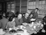 Camp Bowie, Brownwood, Texas, on Army Day; from left Ozelle Humphries, Private H.E. Reese, Mr. and Mrs. C.A. Reese, and Private C.A. Reese sample Army "grub," 04/07/1941