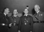 Following Army Day at Camp Wolters, officials are attending a banquet in a downtown Mineral Wells, Texas hotel. Some of the attendees are left to right, Major E. P. Seltzer, Major Paul K. Porch, Lieutenant Colonel Arthur H. Land, and Colonel Henry C. McLean. Published in Fort Worth Star-Telegram, evening edition, April 8, 1941.