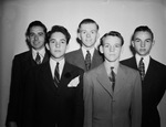 Officers of the Order of Peers, which held its annual banquet and dance at Hotel Texas are, back row, left to right: George Hailey, Viscount of finance and Marquis of Dukes; Walker Williamson, Arch Bishop of Worth and Vice Marquis of Dukes; and Billy Joe Wood, Grand Marquis of Worth; front row, left to right, Bert Kurtz, Viscount of Letters, and Bill Taylor, Count of Worth. All men are wearing suits and standing in front of a wall.
