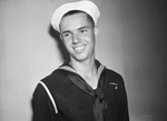 Portrait of sailor Francis Cook, standing against a bare wall, wearing a sailor uniform. He is the son of Mr. and Mrs. H. L. Cook, of Handley, Texas, and the brother of Haskell L. Cook, who he will be on the same crew with aboard the United States Navy's United States Ship (U. S. S.) Concord. His other brother, John L. Cook, plans to join the Navy later this year.