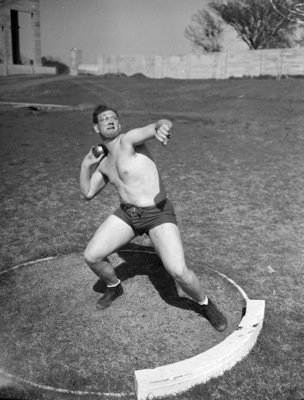 Grayson, Paul; Athletes; Athletic fields; Students; Farrington Field (Fort Worth, Tex.); Track athletics; Paschal High schools; Shorts; Shot putting