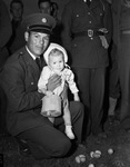 Easter religious services held at Camp Bowie, Brownwood, Texas; Patty Alice Lowe is held by her brother Private Pat Lowe of Company C, 143rd Infantry, 04/13/1941