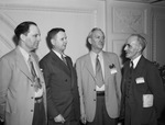 Standing left to right are O. J. Butts, Fort Worth, Texas, secretary-treasurer of the Associated Master Plumbers of Texas; Davis S. Hill, Waco, Texas, president of the state association; R. K. Landreth, Longview, Texas, former president of the state association; and Edward Monteath, St. Louis, Missouri, president of the national association. The elected officers gathered at the annual convention of the Texas association at Hotel Texas. They are standing in front of a wall, wearing suits.