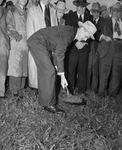 Bomber Plant Ground Breaking. Major Gordon E. Textor, turning a shovel of earth.