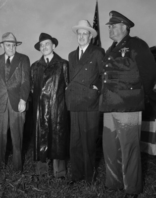 Bomber Plant Ground Breaking. Left to right, Lawrence Westbrook, Colonel Stanley L. Scott, Major Gordon E. Textor and General G. C. Brant.