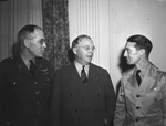 Bomber Plant ground breaking luncheon. Left to right, Lieutenant Colonel H. W; Holden, of Randolph Field; T. E. Braniff, Oklahoma City, president of Braniff Air ways; and Lieutenant Commander C. H. Duerfeldt.