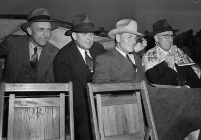 Bomber Plant, ground breaking. Left to right, Carl Skains, T. W. Alexander, United States Marshal J. R. Wright and A. P. Mitchell of Fort Worth.