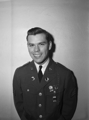 Sergeant Robert Cranston, shown in military uniform, a native of London, who became a citizen of the United States at a special hearing in United States District Court in Fort Worth, Texas. Published Fort Worth Star-Telegram Evening Edition April 24, 1941.