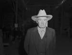 J. A. Taylor, 67, who has been in the Quitaque, Texas, area for more than 30 years. Mr. Taylor was born in San Saba County and worked for a time for Reynolds Bros. in Shackelford County before going to Quitaque, Texas. He has a stock farm eight miles southwest of that city. He standing, and is wearing a coat, shirt and a cowboy hat.
