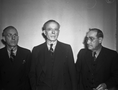 Veterans of Fort Worth Packing Industry are being honored in the Swift & Company's annual business report. The fifteen employees on the honor roll completed thirty-five years of service or more in 1939. Three of the men are pictured, left to right, J. M. Forgelin, R. L. Hacker and T. C. Acola. Mr. Forgelin, Mr. Hacker, and Mr. Acola all served with the Swift & Company for thirty-seven years. All are wearing a three piece suit. Published in the Fort Worth Star-Telegram morning edition, February 4, 1940.