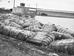 Floods plagued many West Texas communities over the weekend running deep into city streets and causing damage. Creek flooding damaged the Seymour cotton oil mill area. Large bales of cotton salvaged from the flood is shown piled in the street. Published in the Fort Worth Star-Telegram evening edition, May 5, 1941.