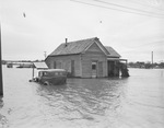 Floods plagued many West Texas communities over the weekend running deep into city streets and causing damage. A house like this in the vicinity of the Seymour Cotton Mill completely surrounded by water had to be reached by boat. Depth of the water is indicated by submergence of an automobile up to its tires. Published in the Fort Worth Star-Telegram evening edition, May 5, 1941.