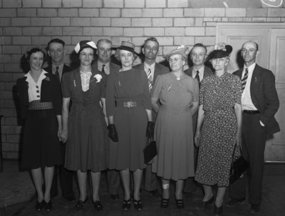 Noodle School fifth anniversary celebration. The Winter family: the men left to right are: Tom, John, Joe Bill and Marion Winter. The women are the Winter daughters, and Mrs. Otto Bicknell, Mrs. Waldo Cox, Mrs. J. C. White, Mrs. Atlas Phillips and Mrs. Lee Eason.