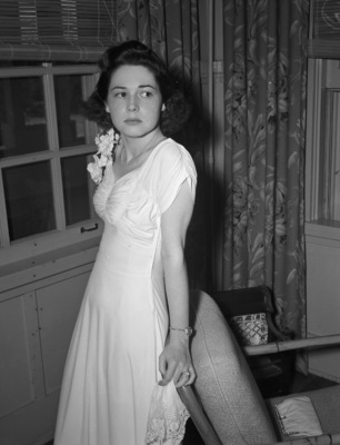 Hostess and honorees at a tea party, which was given at River Crest Country Club, is Mrs. Robert J. Wynne, the former Mary Wynn. She is a daughter of Mrs. Ike A. Wynn. She is wearing dresses with flowers on their right shoulders. Published in the Fort Worth Star-Telegram morning edition, May 11, 1941.