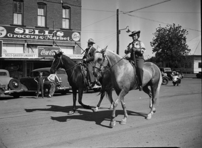 Mansfield Pioneer Celebration. Leaders of the parade were Mayor W. S. Lamb of Mansfield, and Mrs. Arch Gibson of Midlothian.