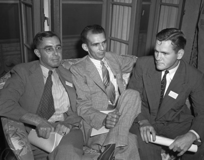 West Texas Geological Society. Field trip. Gulf Oil Corporation geologists: Left to right, M. E. Upson, Fort Worth, Texas; John Crump, Midland, Texas, and Harold McClure, Fort Worth, Texas.