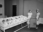 National Hospital Day. Six babies in new nursery at Harris Memorial. Pearlene Hamilton and Verna Crouch are the nurse.